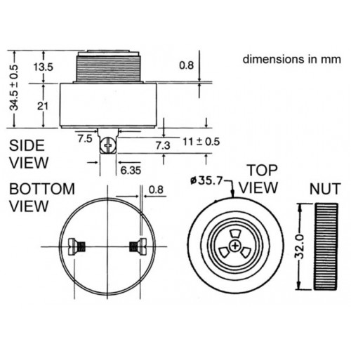 BUZZER MET REGELBAAR VOLUME 3-24vdc - PULSTOON - SCHROEFMONTAGE