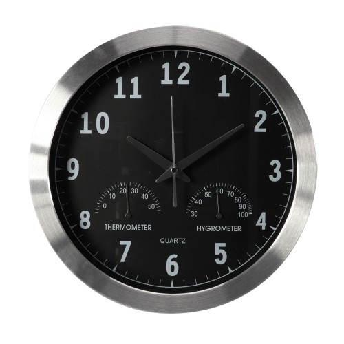 ALUMINIUM WANDKLOK MET THERMOMETER & HYGROMETER - 35.5 cm
